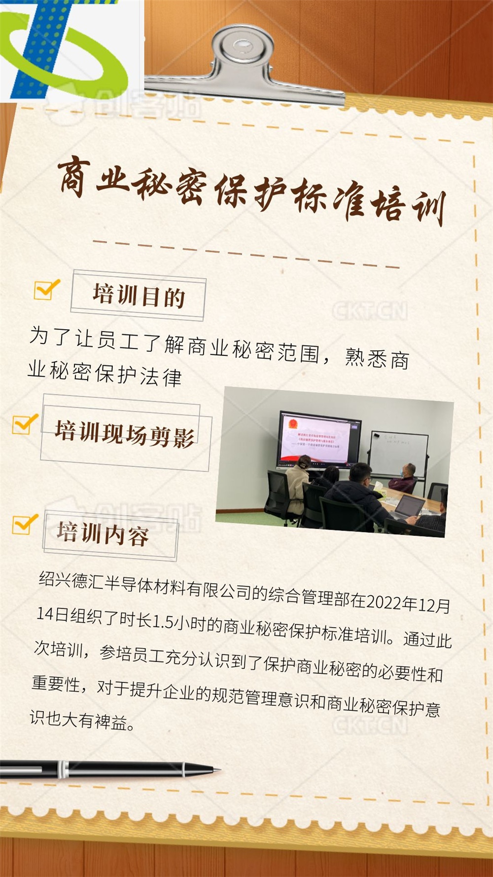 商業(yè)秘密保護(hù)標(biāo)準(zhǔn)培訓(xùn) 2022-12-15 15:50:14 浙江德匯電子陶瓷有限公司 瀏覽次數(shù) 1376 上一條2022年首屆專案改善發(fā)布會 下一條SPC測評鑒定大賽圓滿結(jié)束