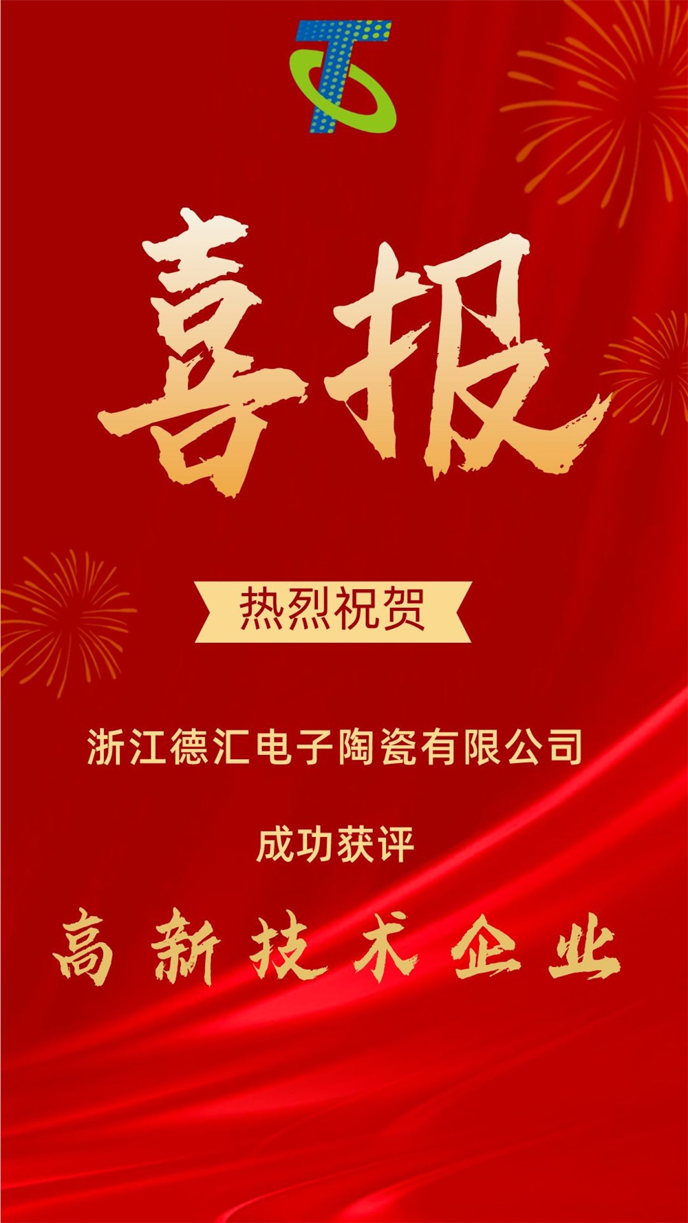 熱烈祝賀德匯電子被評(píng)定為高新技術(shù)企業(yè) 2023-02-01 10:18:50 浙江德匯電子陶瓷有限公司 瀏覽次數(shù) 1783 上一條華為供應(yīng)商誠(chéng)信廉潔宣傳 下一條德匯總經(jīng)理徐榮軍發(fā)表2023年新年致辭